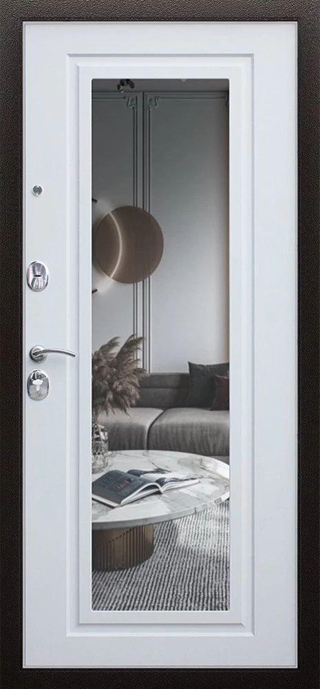 Надежная входная Дверь Комфорт с зеркалом премиум класса по цене 30 863 руб. Большая толщина стали защитит от проникновения в ваш дом, квартиру или коттедж. Используется очень качественная фурнитура: замки, цилиндры, ручки, защелки. Покрытие и отделка двери изготовлено под внимательным контролем производителя. Дверь имеет долгий срок службы и гарантию.