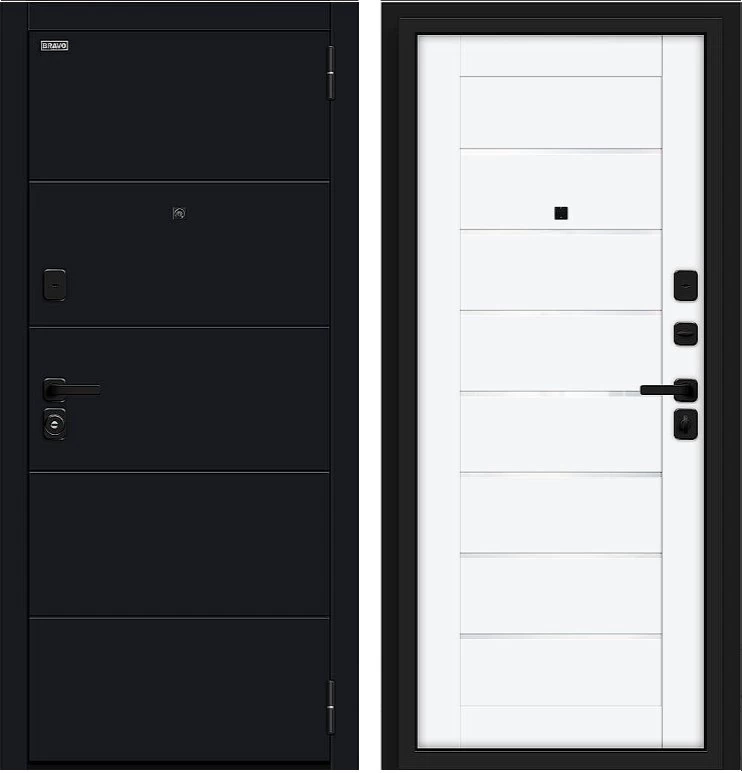 Надежная входная Дверь Браво Прайм/SBlack-Black Shell/White Silk премиум класса по цене 42 663 руб. Большая толщина стали защитит от проникновения в ваш дом, квартиру или коттедж. Используется очень качественная фурнитура: замки, цилиндры, ручки, защелки. Покрытие и отделка двери изготовлено под внимательным контролем производителя. Дверь имеет долгий срок службы и гарантию.